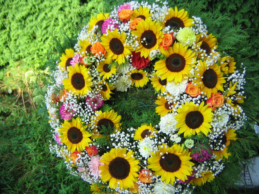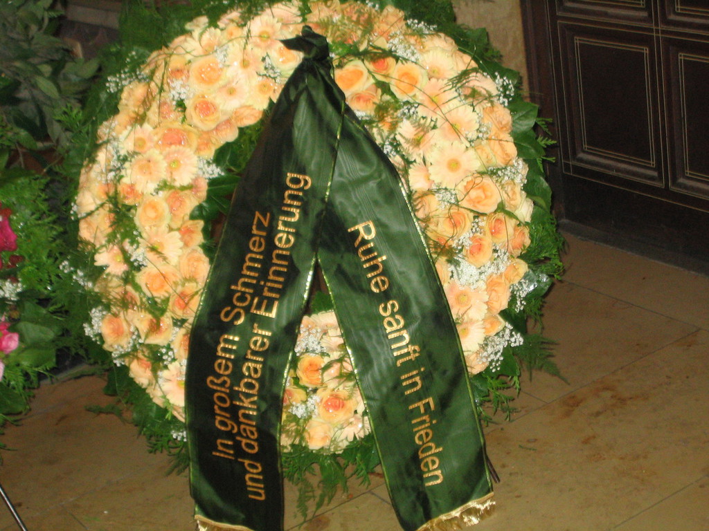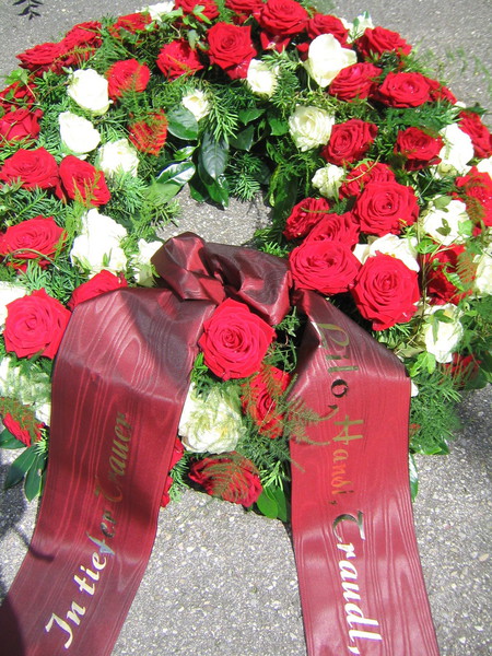Von dem Verstorbenen Abschied zu nehmen, ihm die letzte Ehre zu erweisen steht bei der Trauerfeier nahezu der Trauerkranz in Form des geschlossenen Kreises als Zeichen der Unendlichkeit an erster Stelle.