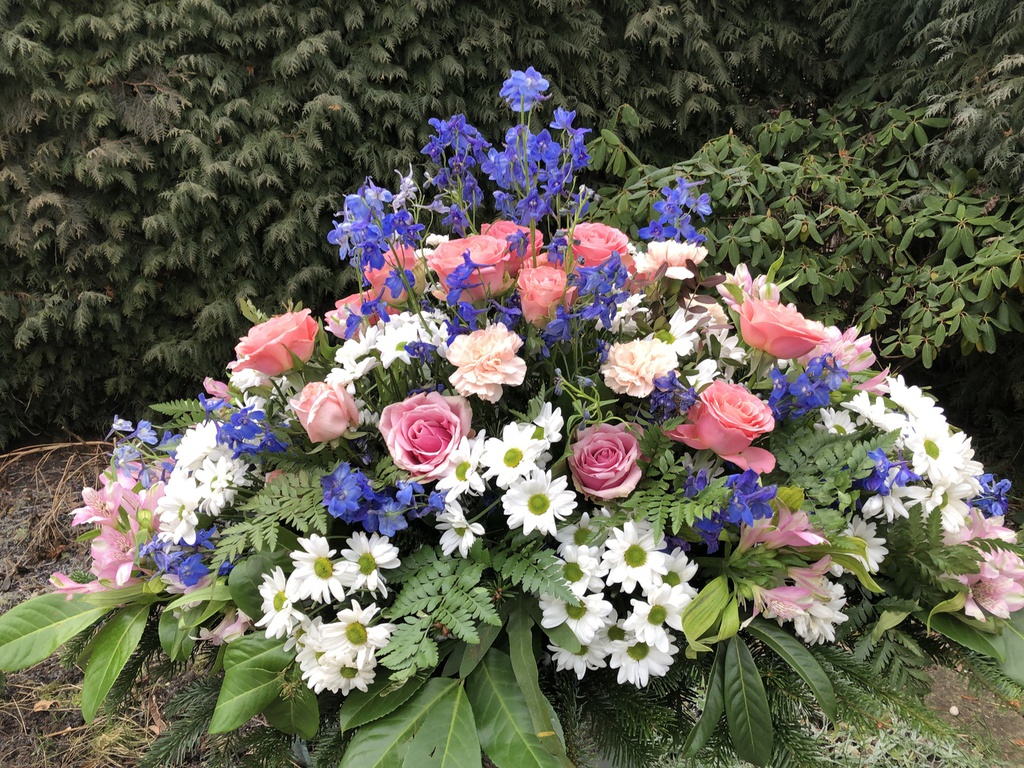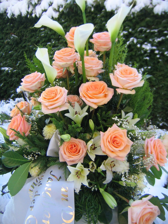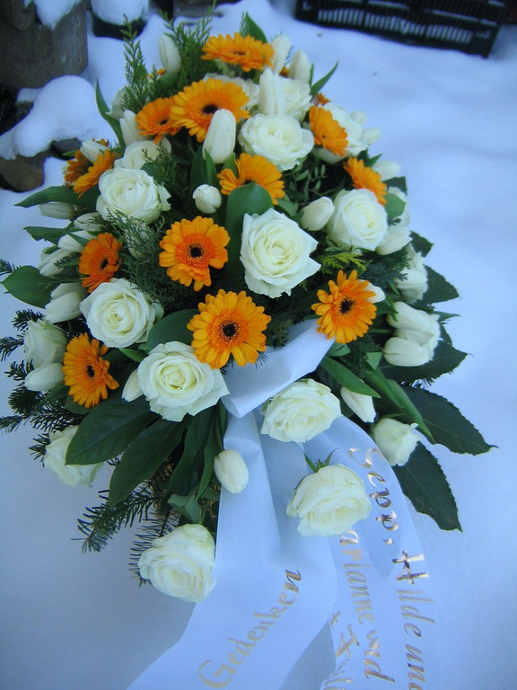 Als Ansprechpartner für Trauerfloristik, persönlich beratend zur Seite stehend arrangiere ich für Sie Trauerkränze, Trauergestecke, Sargschmuck oder anderen Blumenschmuck individuell nach Ihrem persönlichen Wunsch und Vorstellung in verschiedensten Größen.